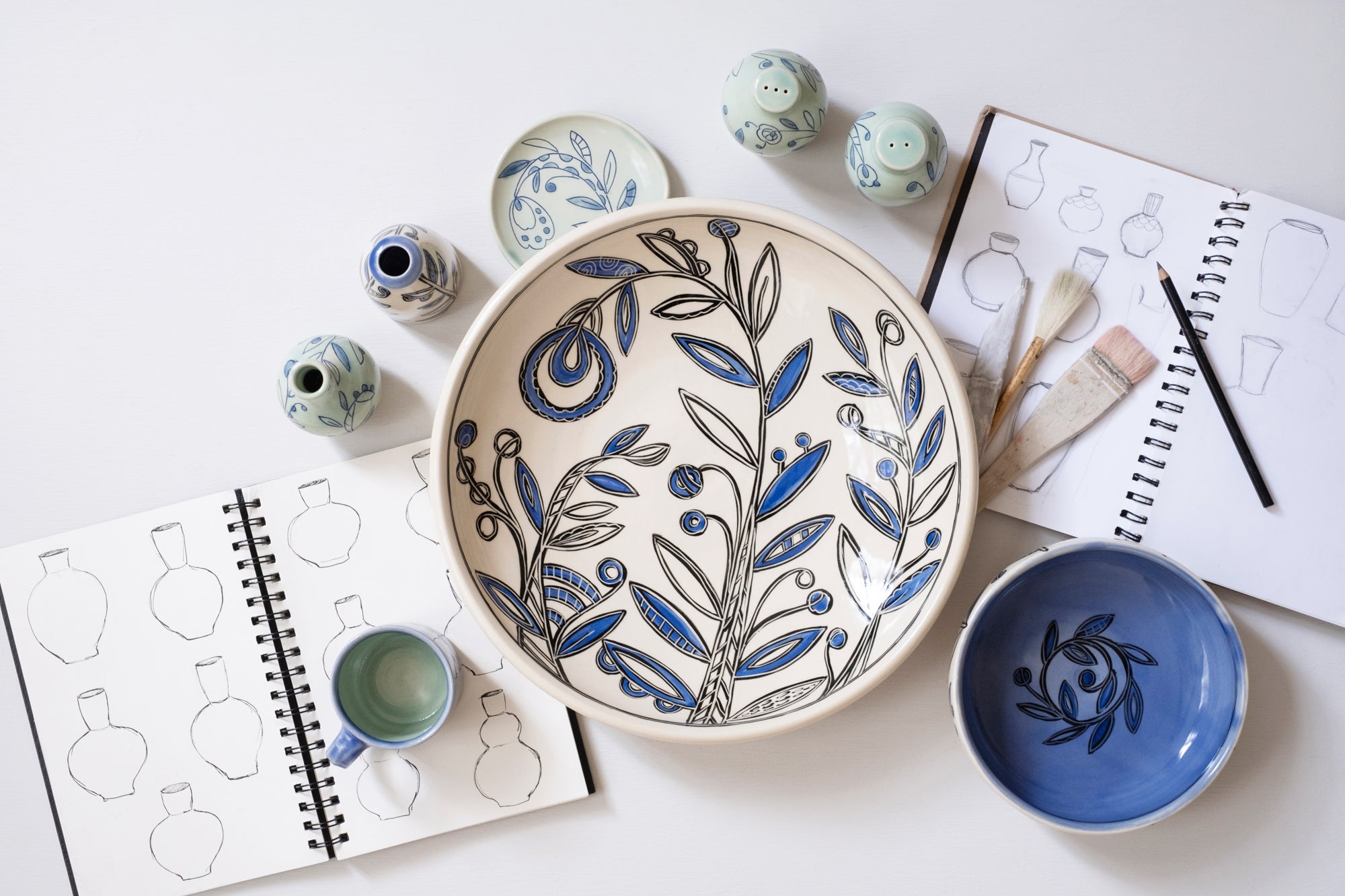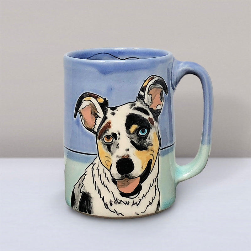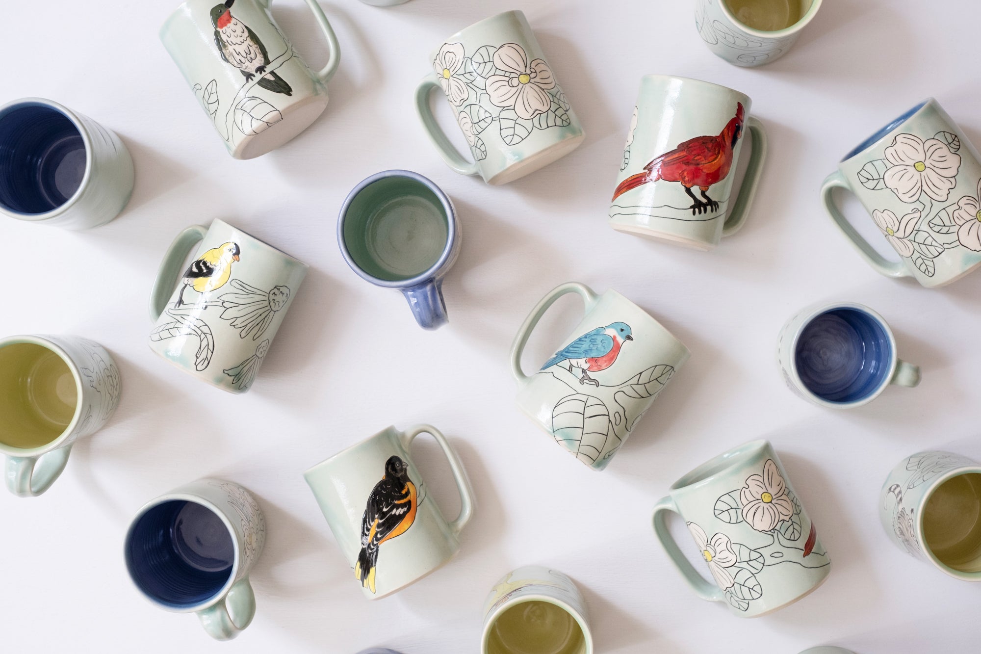 María Andrade Troya makes hand illustrated pottery. Her love of animals and drawing led her to start making custom pet portraits. Each piece is wheel-thrown and glazed in vibrant colors.